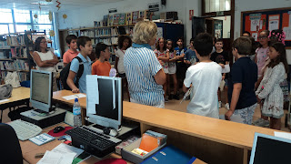 As informações breves estavam alinhadas com o tempo [curto] desta visita: falamos sobre a equipa da BE, o balcão de atendimento, os espaços, o horário, os livros, o clube de leitura, os computadores... e esperamos por eles para podermos falar mais da sobre Biblioteca com mais tempo.