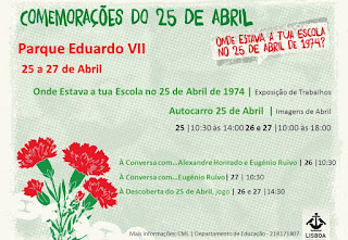 A Equipa da BE participou nesta apresentação que decorreu na Escola Básica Francisco Arruda e ouviu o apelo da Vereadora da Educação, Dr.ª Catarina Albergaria, para que os alunos do 1.º e 2.º ciclo das Escolas de Lisboa participassem neste projeto com os seus trabalhos para uma exposição no Parque Eduardo VII de 25 a 27 de Abril que integra o programa de comemoração do 25 de Abril promovido pela CML.