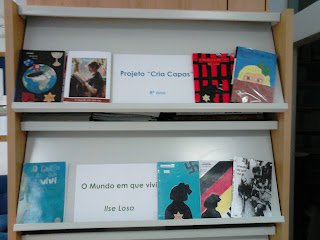 Os trabalhos realizados pelos alunos, no âmbito do projeto "Cria capas", estão expostos na BE e na Sala de Multimédia e Produção e revelam a criatividade e a imaginação dos alunos leitores, não só pelo design e imagens escolhidas mas também pelas críticas apresentadas nas badanas das capas, provando a opinião que construíram sobre a obra de Ilse Losa.