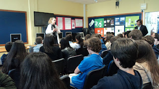 Foi uma atividade realizada com o apoio da Leya e da Direção, tendo sido realizadas duas sessões, uma para o 7ºano e outra para o 8.º ano. A autora, a par da temática do livro falou de problemas da adolescência associados aos aspetos emocionais e físicos, à relação com os pares, com a família , com a escola... e respondeu a questões que foram colocadas pelos alunos.