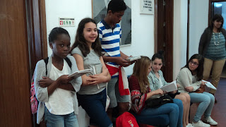 Aproveitamos esta efeméride para convidar os alunos do Clube de Leitura que participaram na ilustração do painel de azulejos a virem a Biblioteca participar na inauguração do mesmo, e fotografá-lo para mostrar às famílias.