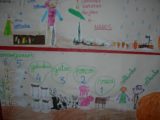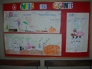 Nas aulas, os alunos do 1.º Ano deram vida ao Cuquedo e ao Nabo gigante nestes cartazes que estão afixados na escola.