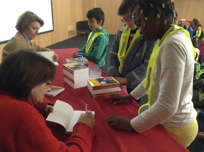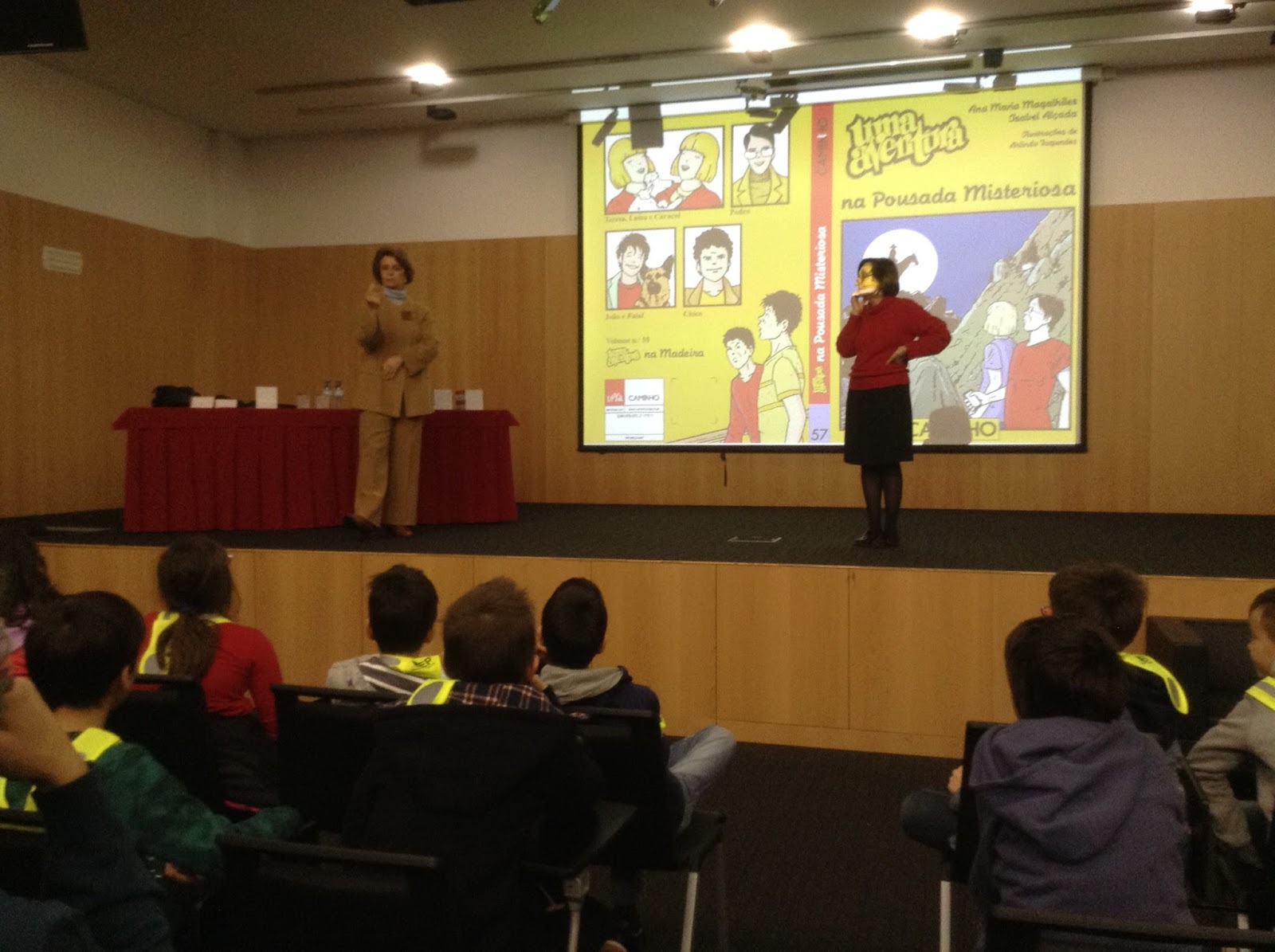 Os alunos levavam questões para colocar às escritoras e as respostas foram dadas em jeito de conversa sempre num ambiente muito descontraído e que proporcionou boas aprendizagens sobre os livros e a vida das escritoras que, falaram também do último livro "Uma aventura na Pousada Misteriosa", onde mostravam alguns momentos de aventura que viveram para escreverem mais esta "aventura", tendo depois autografado um exemplar oferecido pela Leya a cada aluno, sendo dois para a biblioteca