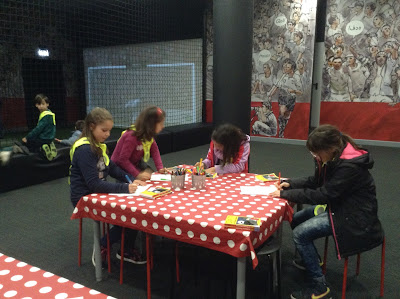 Ainda houve tempo para marcar uns golos, entrar num simulador e saborear os frutos da Frubis. Já no regresso ao autocarro a águia Vitória esperava este grupo de visitantes da FLS