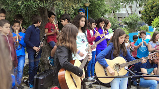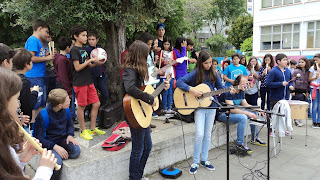 Os alunos estavam muito bem ensaiados, trabalho que decorreu ao longo das aulas, e tocaram para colegas de outras turmas e professores que estavam a terminar ou a iniciar o período de aulas na escola.