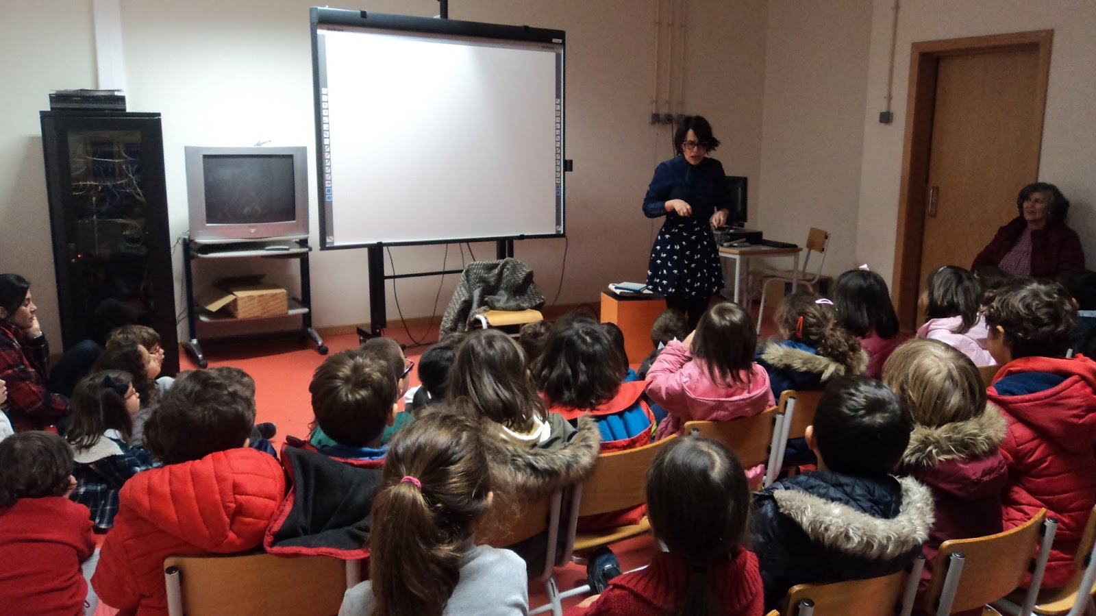 A expressão corporal, o movimento e os gestos, a voz, a forma de contar... prenderam a atenção dos alunos mais pequenos da Escola que ouviram muito concentrados as histórias que a Ana Sofia tinha preparado.